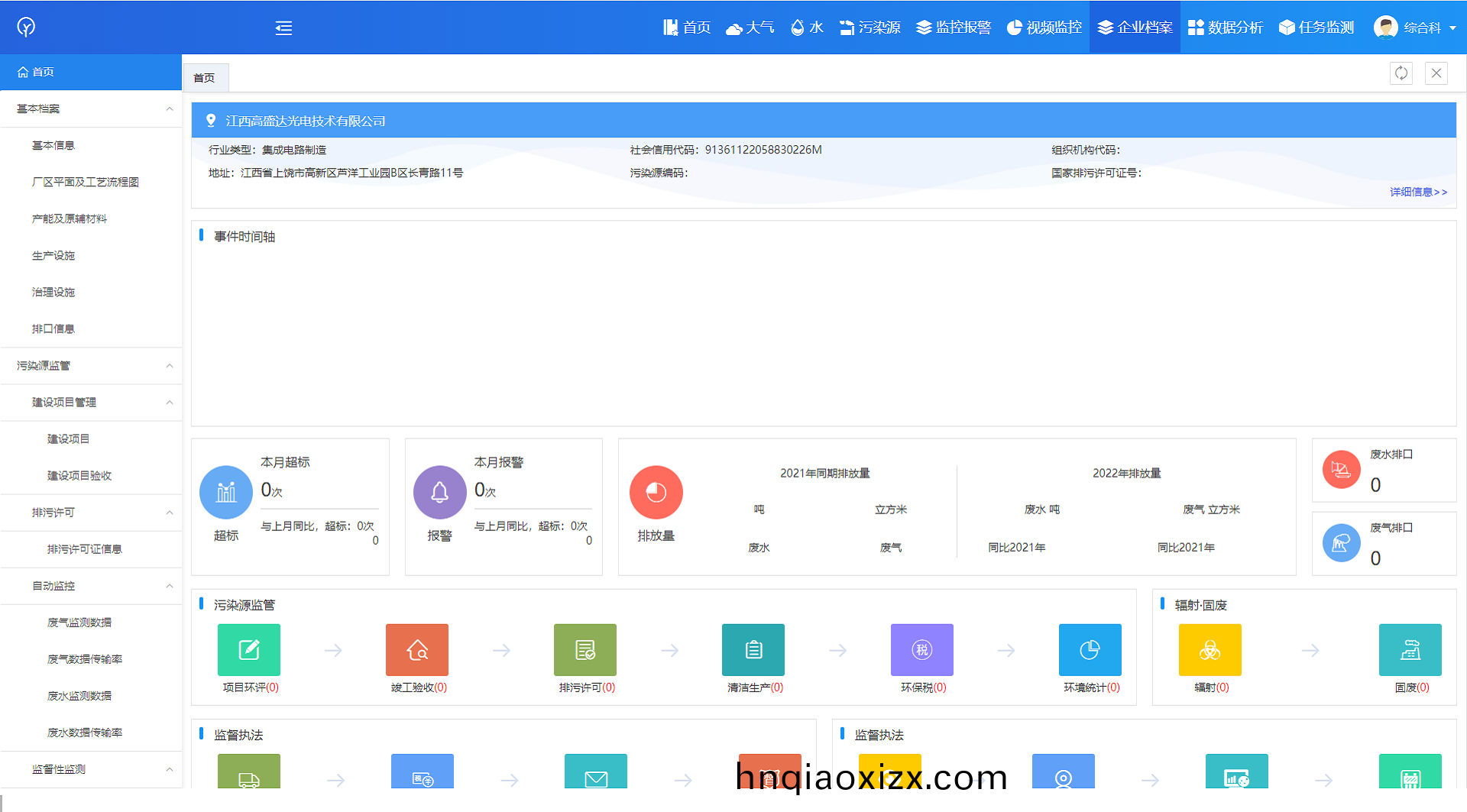 One enterprise, one file: Integrate pollution source monitoring and supervision information to form an overall set of numbers to provide support for environmental protection departments in law enforcement and daily management.