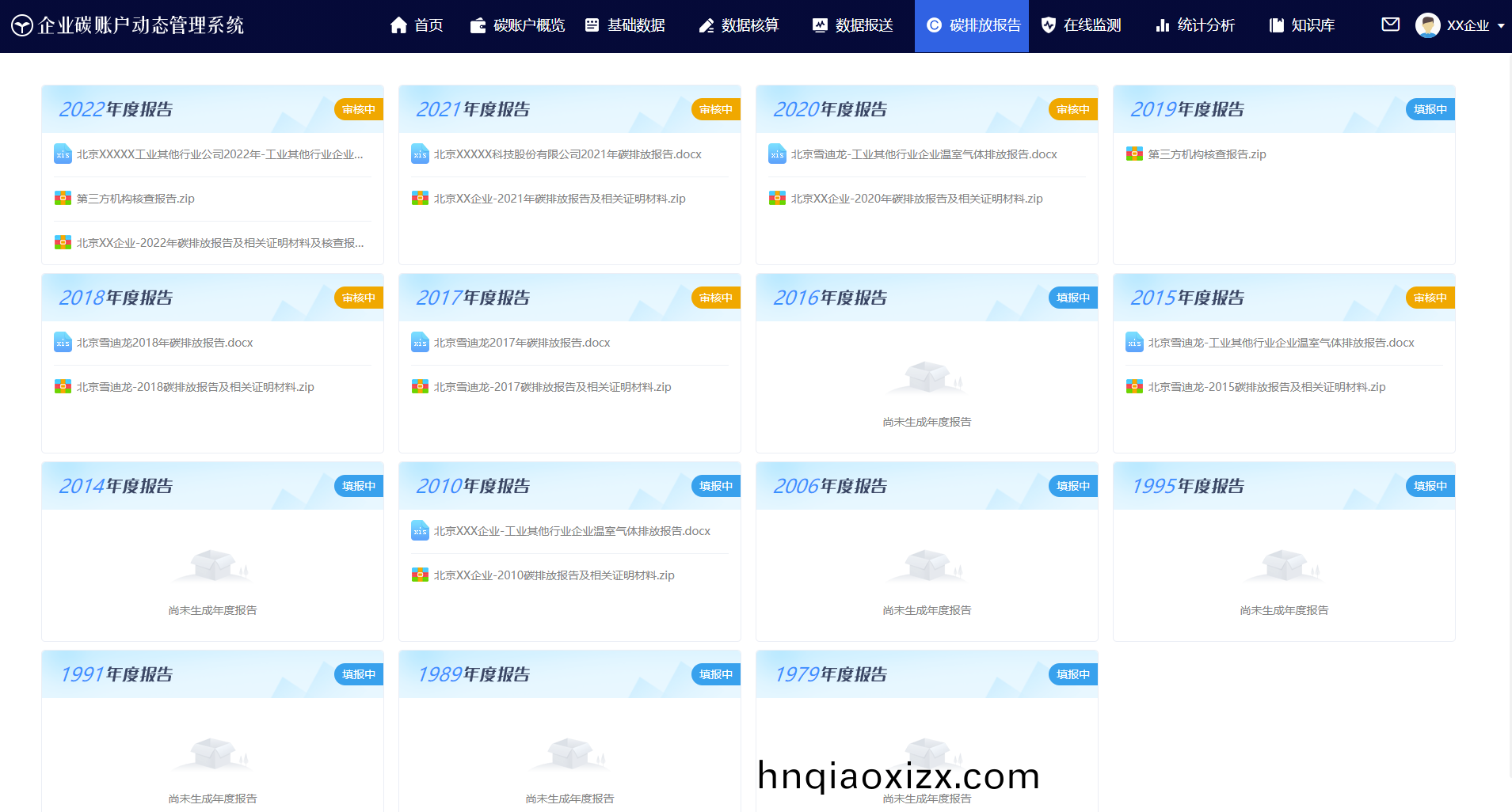 Intelligently generates annual carbon emission reports, and provides functions such as downloading and progress viewing.