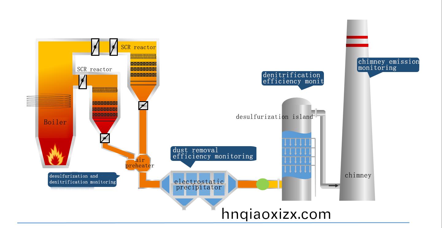 Monitoring of the entire process chain of thermal power plants, such as monitoring of denitrification efficiency, dust removal efficiency, desulfurization efficiency, ultra-low emissions, etc.