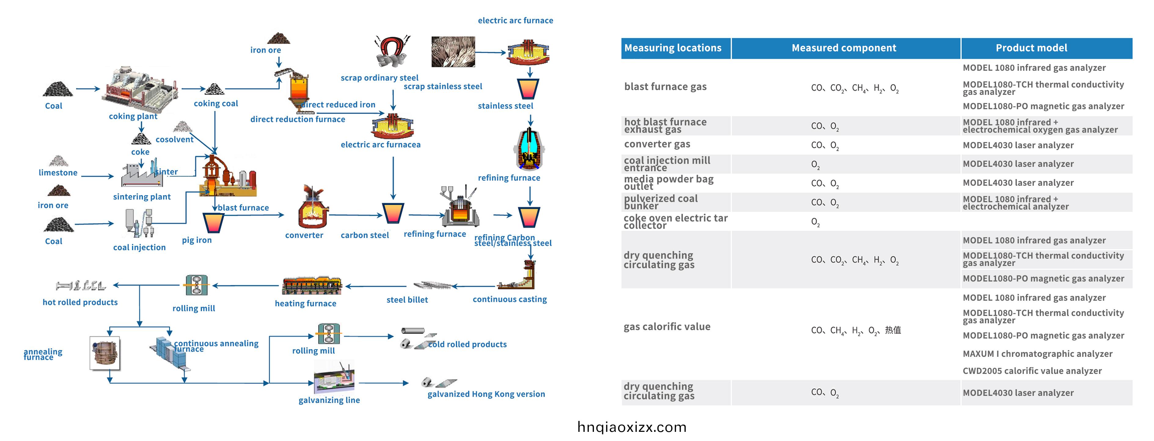Different measurement methods are used according to different process sections, including blast furnace gas, coke oven gas, calorific value extraction measurement method, converter, and electric coke capture laser measurement method.